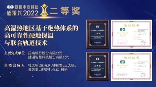 11月9日,“2022年数据中心科技成果奖颁奖典礼”在第十届数据中心标准峰会上隆重举行。基于“捷通智慧建造”理念的“多楼层堆叠式间接蒸发制冷节能创新技术”、“高湿热地区基于绝热体系的高可靠性硬地保温与联合轨道技术”荣获数据中心科技成果奖一等奖和二等奖。