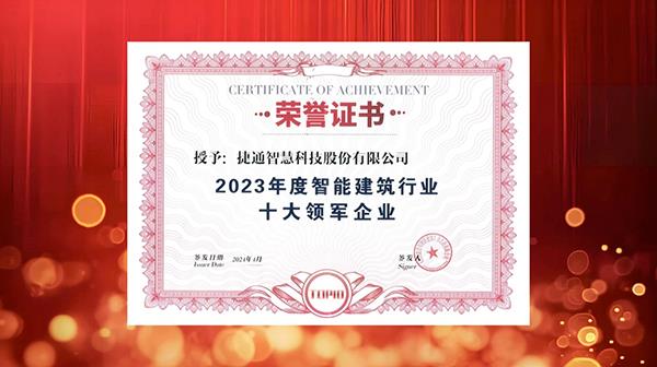 捷通荣膺“2023年度智能建筑行业十大领军企业”