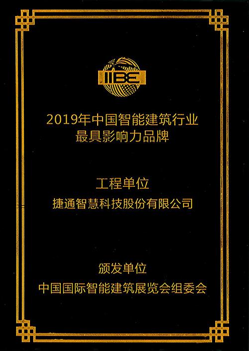 3月11日,由中国国际智能建筑展览会组委会组织评选的“2019年度中国智能建筑行业最具影响力品牌”奖在北京国家会议中心颁发。